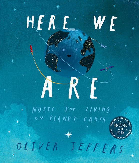 #1 New York Times Bestseller and #1 TIME Best Book of the Year for 2017. Audio Production Awards, Audio Performer of the Year - Gold Winner, 2018 This book and CD edition of the exquisite and thought-provoking Here We Are comes with heartfelt, award-winning audio, read by the internationally best-selling creator himself, Oliver Jeffers! Well, hello. And welcome to this Planet. We call it Earth. Our world can be a bewildering place, especially if you've only just got here. Your head will be filled with questions, so let's explore what makes our planet and how we live on it. From land and sky, to people and time, these notes can be your guide and start you on your journey. And you'll figure lots of things out for yourself. Just remember to leave notes for everyone else... Some things about our planet are pretty complicated, but things can be simple, too: you've just got to be kind. Here We Are is the utterly heartfelt new book from Oliver Jeffers. We're glad you found it. "An optimistic snapshot of contemporary life, this heartfelt hug of a book ought to become a classic" The Guardian