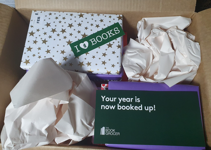 Book Grocer's Book Club Boxes contain 12 handpicked fiction titles, individually wrapped and labeled for each month of 2026 - from January to December inclusive.