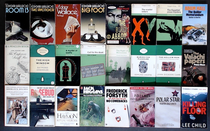 This extensive collection of twenty-four books offers a masterclass in classic crime, espionage, and thriller writing. The box features a stellar lineup of iconic Penguin Crime editions, including early George Smiley novels by John le Carré and the hardboiled noir of Raymond Chandler. Alongside five pulp thrillers from the prolific Edgar Wallace, readers will find the definitive locked-room mystery by John Dickson Carr and the explosive debut of Lee Child’s Jack Reacher. From the foggy streets of London to the frozen decks of a Soviet trawler, this set covers the full spectrum of mystery fiction’s golden and modern ages. Each book is secondhand and may show signs of wear.