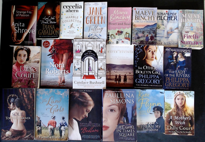 Dive into a curated collection of engaging fiction featuring some of the biggest names in storytelling, from sweeping historical sagas and intimate wartime dramas to witty contemporary tales of love and ambition. This box brings together twenty captivating narratives by beloved authors like Maeve Binchy, Philippa Gregory, Dilly Court, and Nora Roberts, offering hours of immersive reading that spans generations and continents. Each book is secondhand and may show signs of wear.