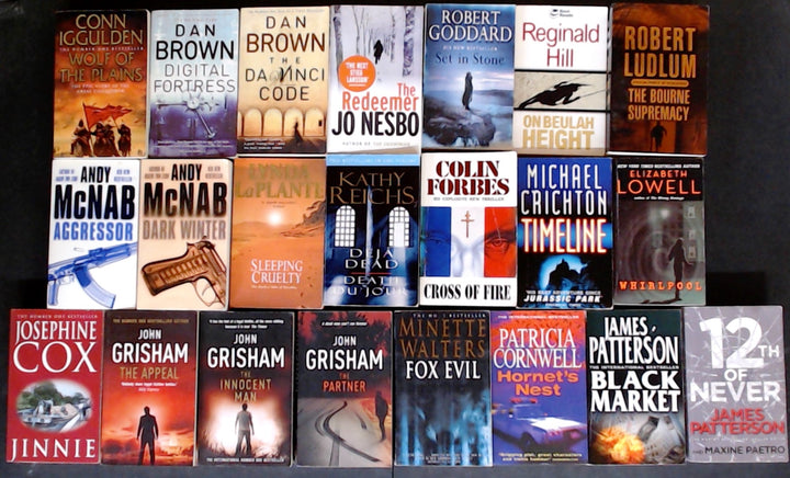Experience a rush of adrenaline with this dynamic collection of twenty-two high-stakes thrillers, military action, legal suspense, and engaging historical epics. From the espionage world of Robert Ludlum and the forensic science of Patricia Cornwell to the historical grandiosity of Conn Iggulden and the gritty realism of Andy McNab, this box delivers nonstop excitement across various genres. It is an ideal collection for readers who crave fast-paced plotting and immersive storytelling. Each book is secondhand and may show signs of wear.